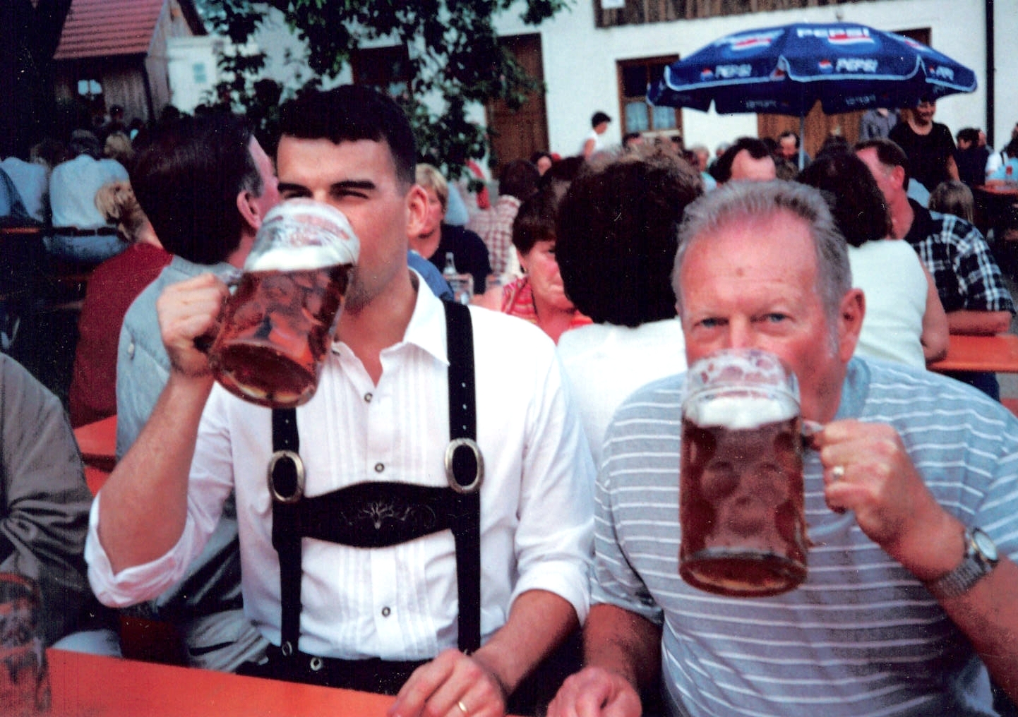 | Dad and I enjoy big beers at the Hofbrauhaus |